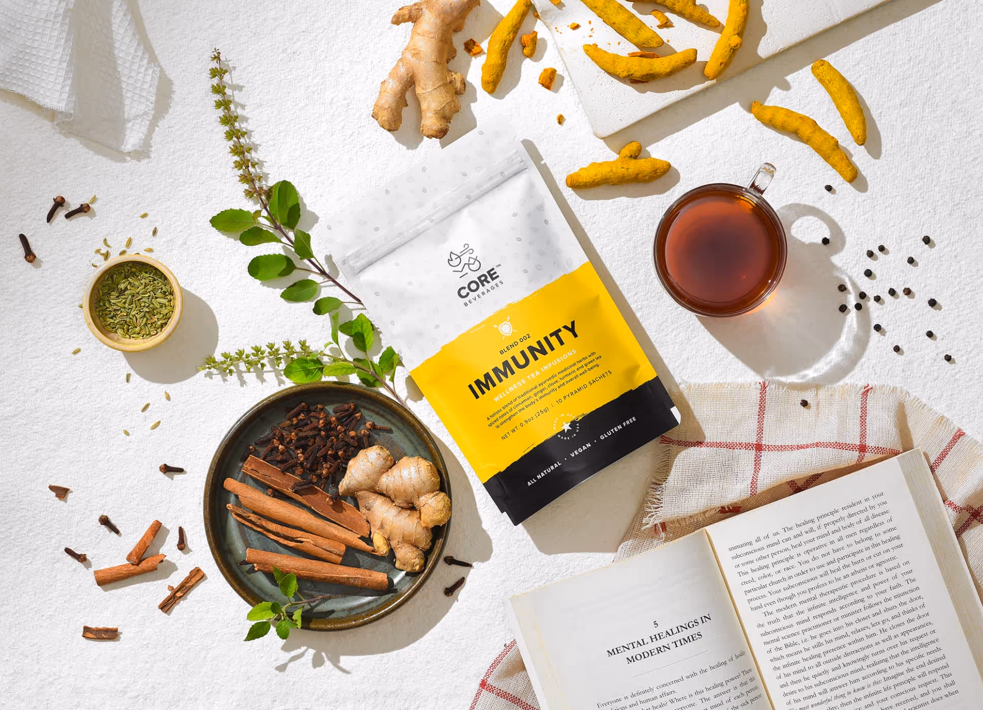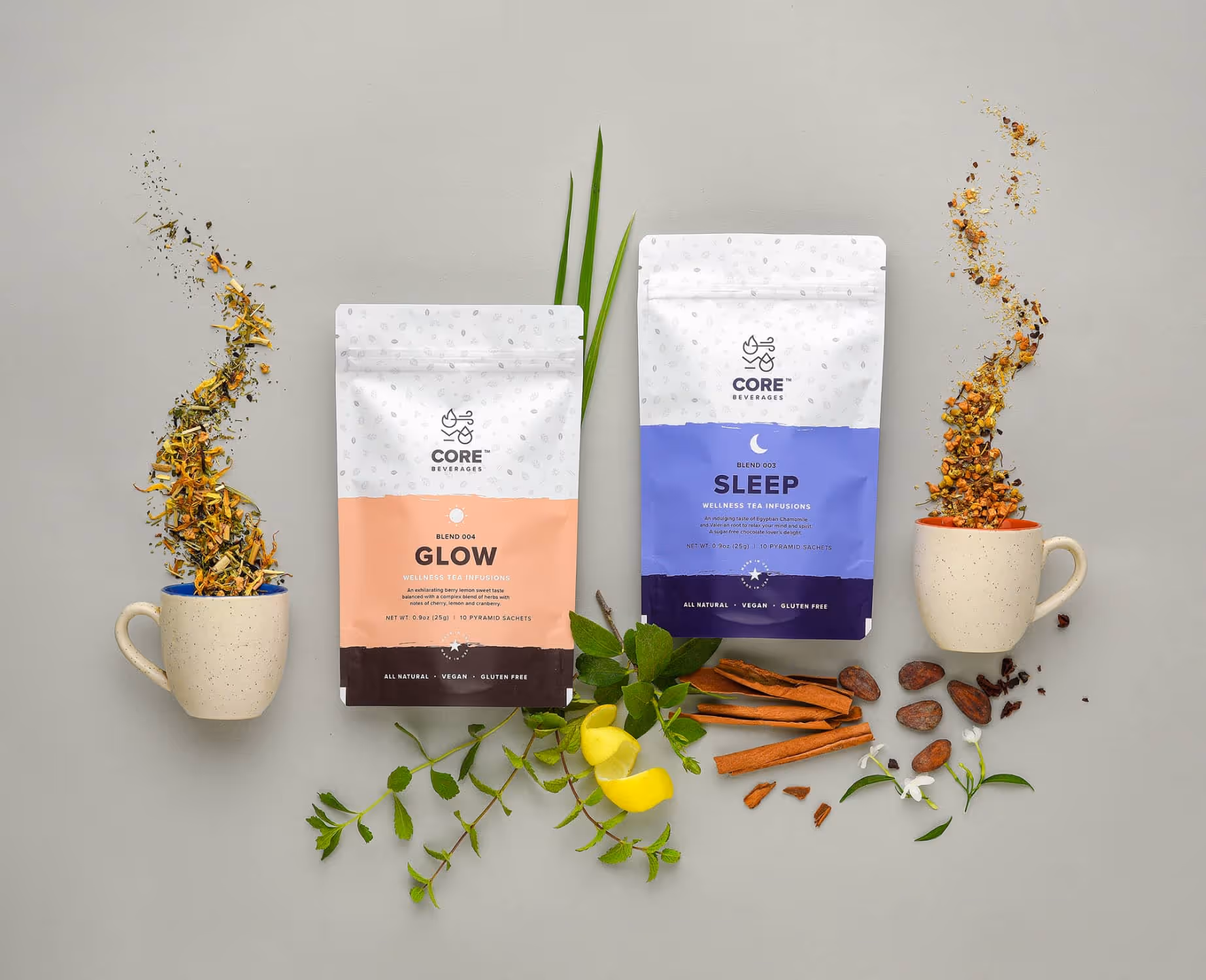 This is my recent work for Core Beverages, a New Jersey-based brand creating wellness tea blends handcrafted with premium ingredients to support core-body wellness. Beyond the health benefits, Core emphasizes the simple joy of taking a mindful moment each day with a cup of their tea.