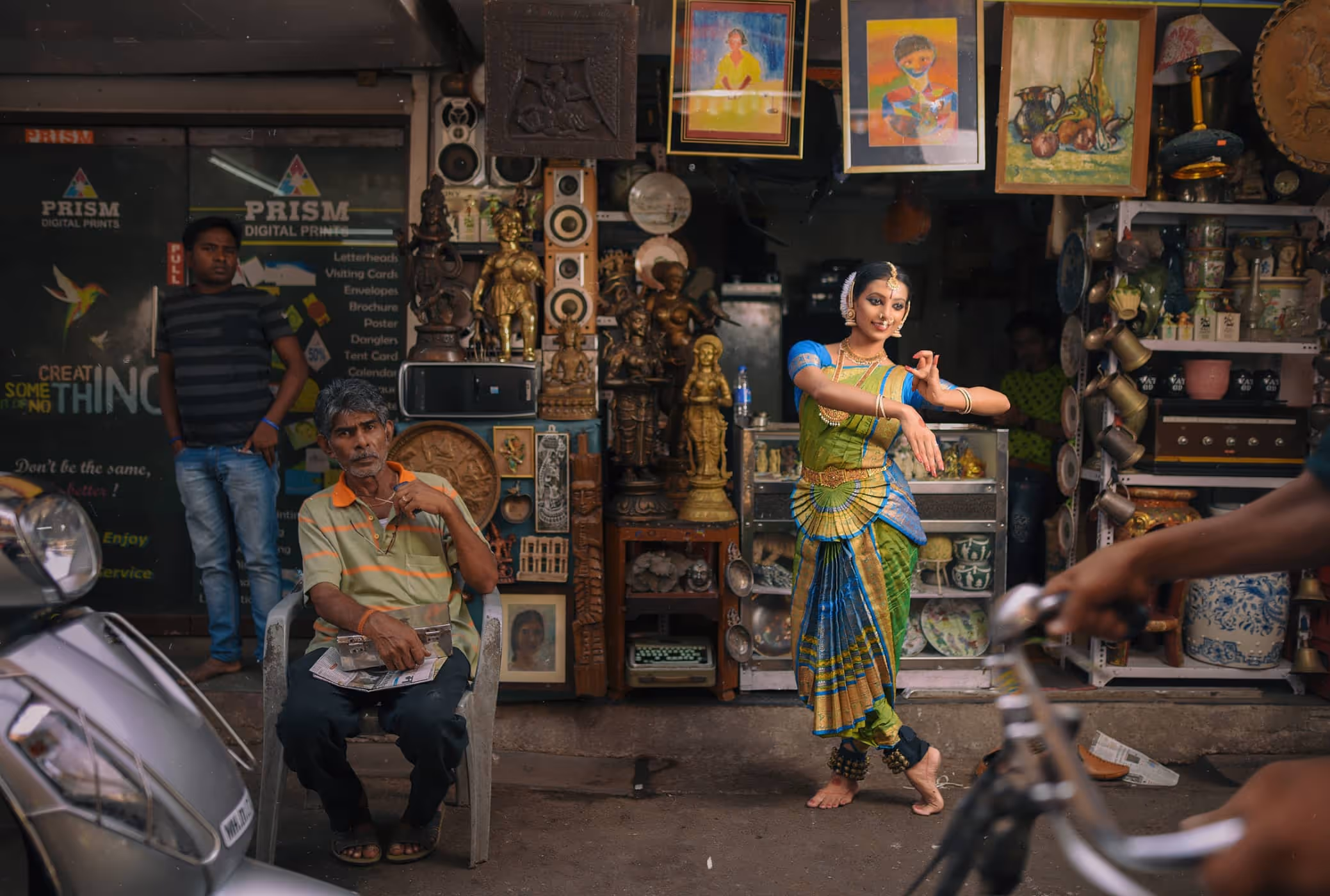 When the divine classical dance form of India - Bharatnatyam is presented in the chaotic streets of Mumbai, the atmosphere turns divine and peaceful. Damsel in Distress is my recent photographic project displaying a Bharatnatyam dancer against the chaotic and busy streets of Mumbai, India.