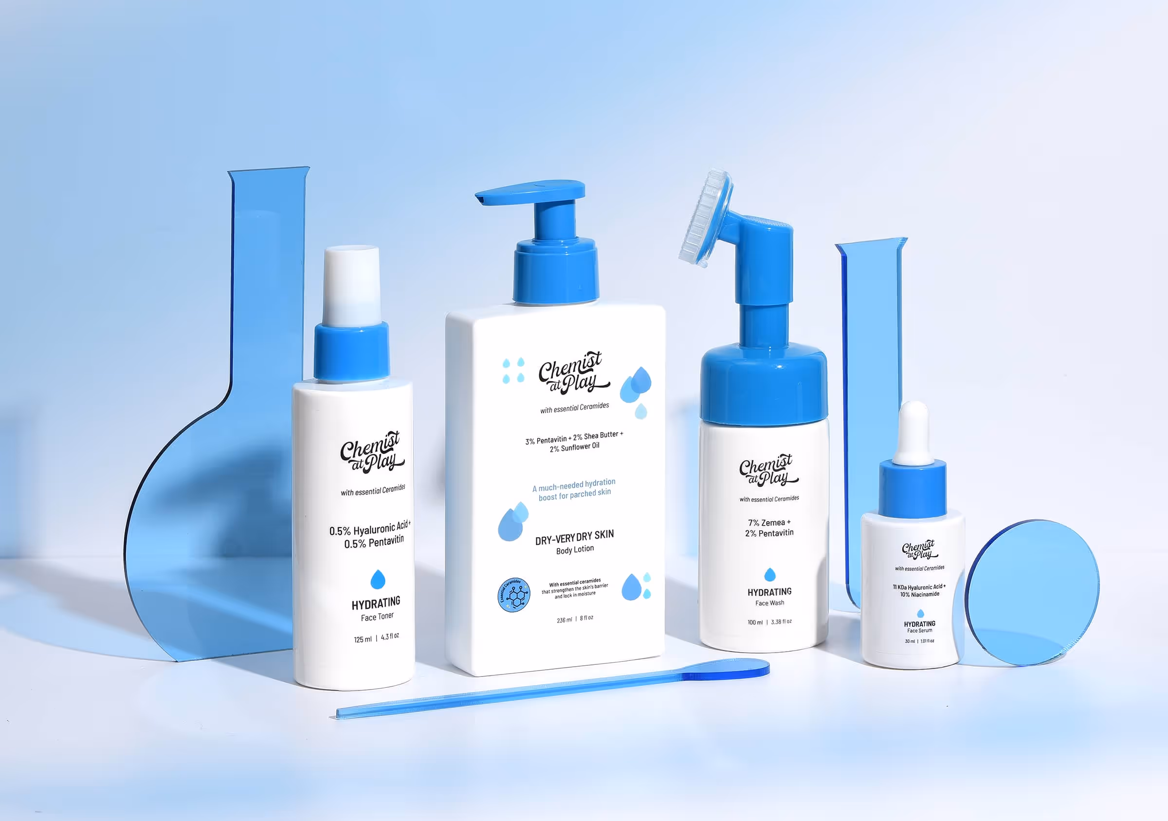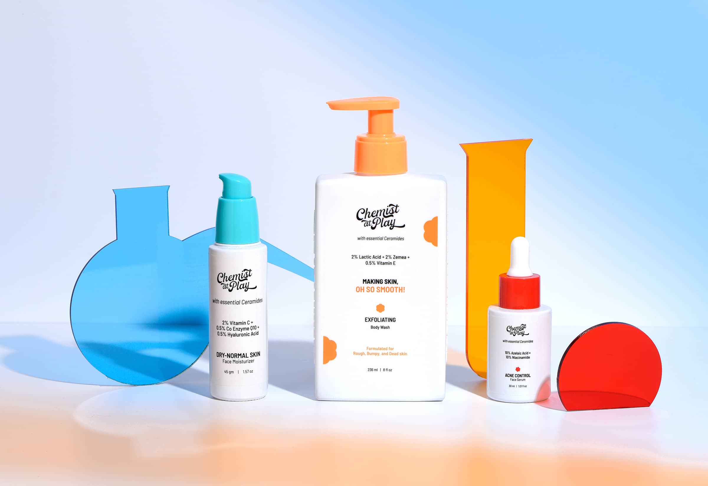 This is my most recent series for a skincare brand, showcasing products that focus on hydration, radiance-boosting, exfoliation, acne-fighting, and skin repair. The shoot was an exciting blend of the brand’s fun and scientific side, brought to life through these images.