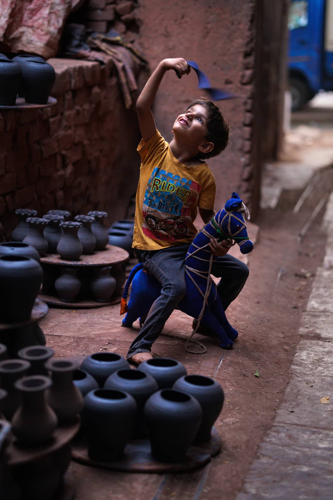 Dharavi, and especially Kumbharwada (the potter’s community) has become a part of my creative journey after more than 25 visits. There is something magical about the way the light dances across the old lanes, the textures of clay-stained walls, and the timeless faces I meet here. Every time I return, I discover something new; a subtle shift in the light, a fresh composition waiting to be seen. This series is my love letter to the beauty, resilience, and spirit of Kumbharwada’s people.