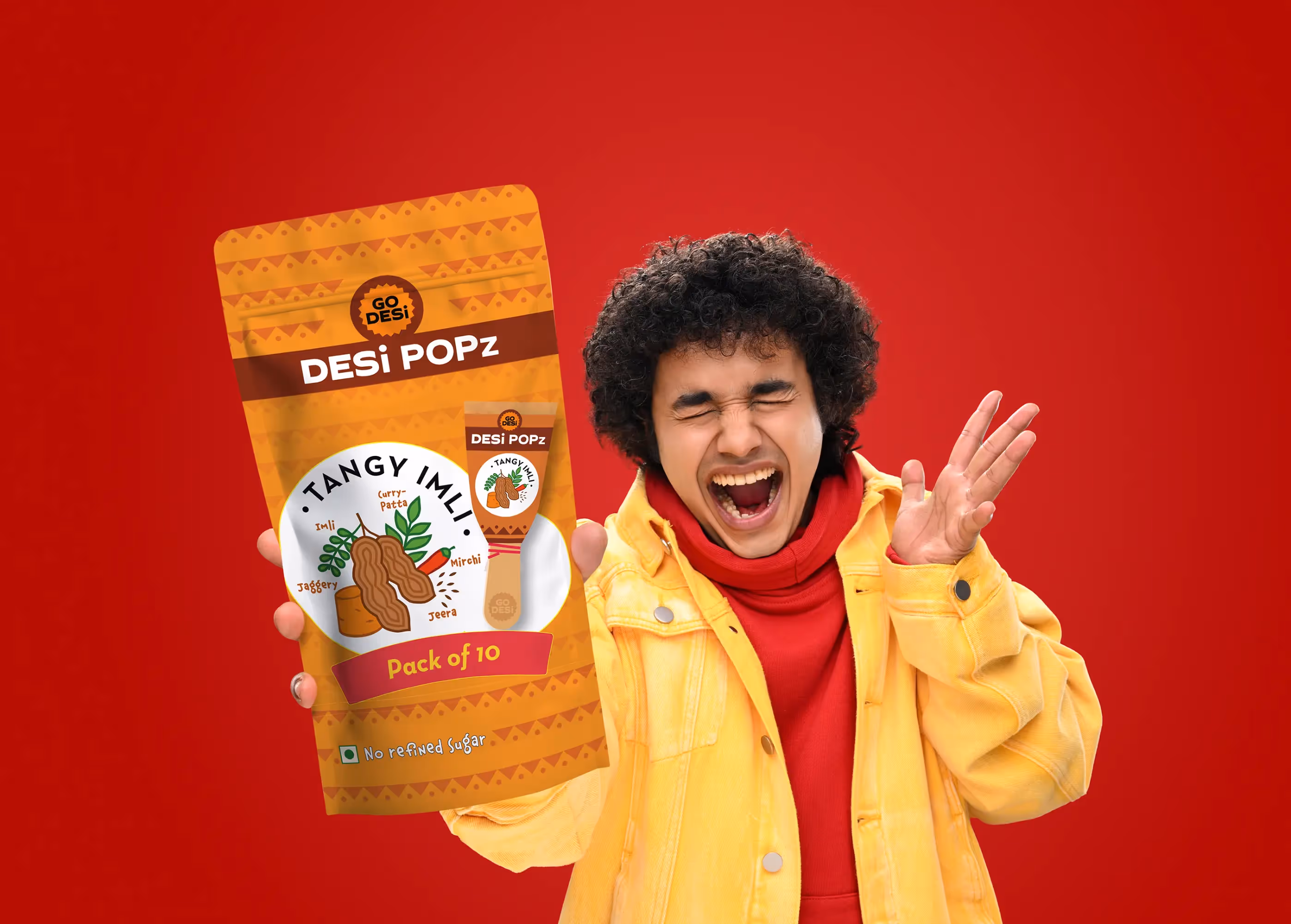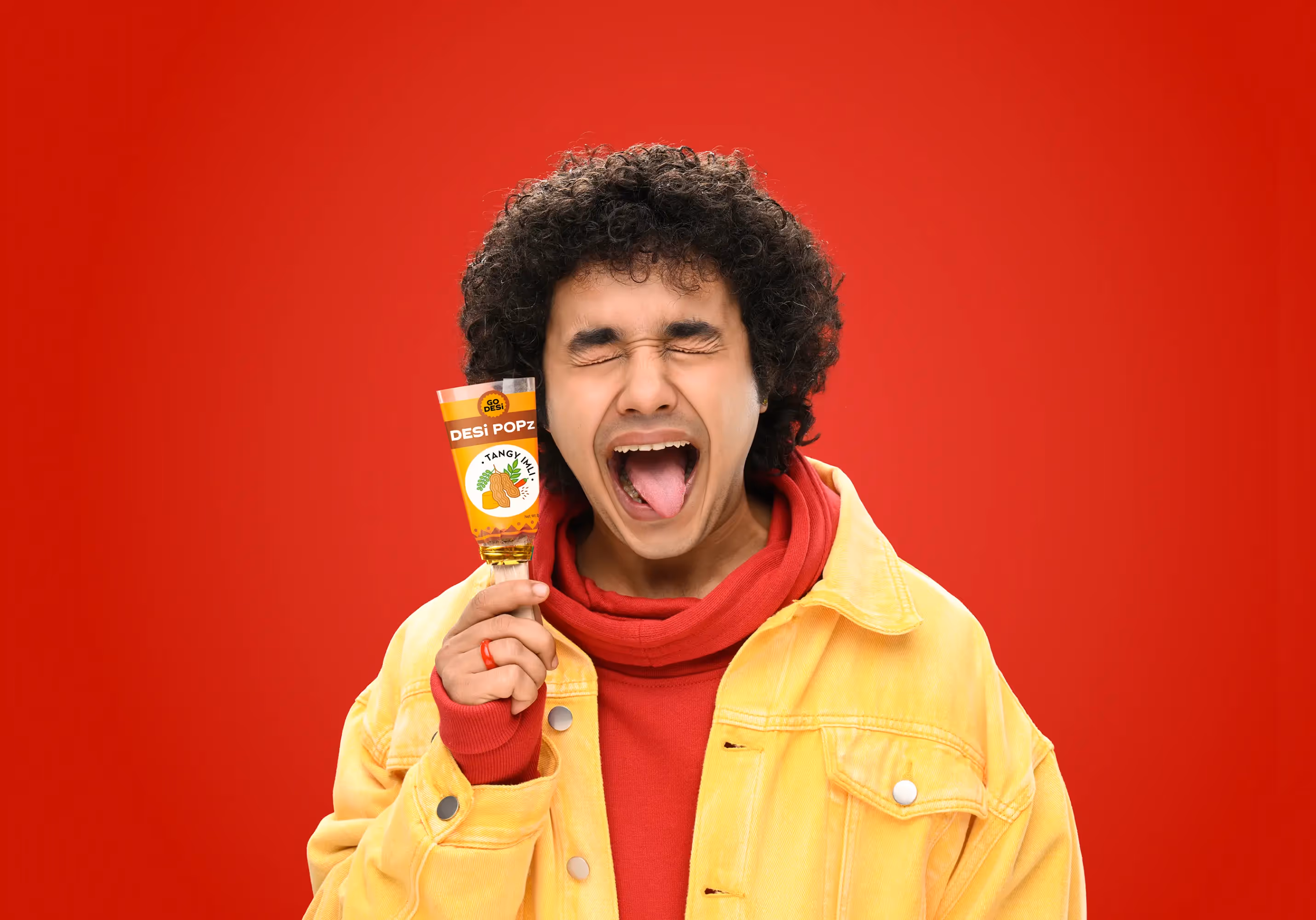 It was a fun experience shooting Desi Popz for the amazing Godesi, a Bangalore-based packaged food brand inspired by regional flavours, tastes, and formats. This series is all about colour, energy, and expressions- capturing the exact face you make when you take a bite of the tangy Imli Pop!