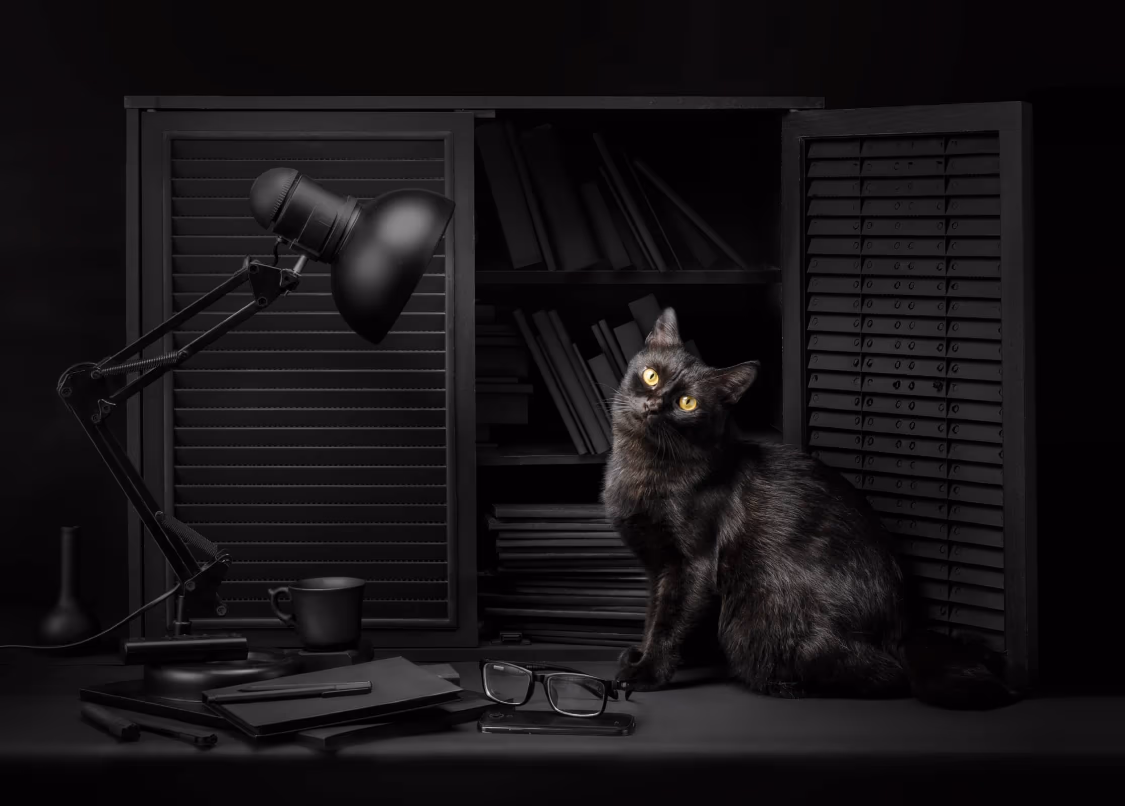 This is a series of images of my pet cat, Loki, a full black Bombay we adopted when he was just 12 days old. He used to sit on my black camera bag, completely camouflaged, which inspired his name,Low Key, a design concept where all dark colors create low contrast. Cats are color blind, seeing the world in black and white, and I wanted to capture Loki’s perspective- observing me reading, having breakfast, and all the small everyday moments- everything truly low-key.