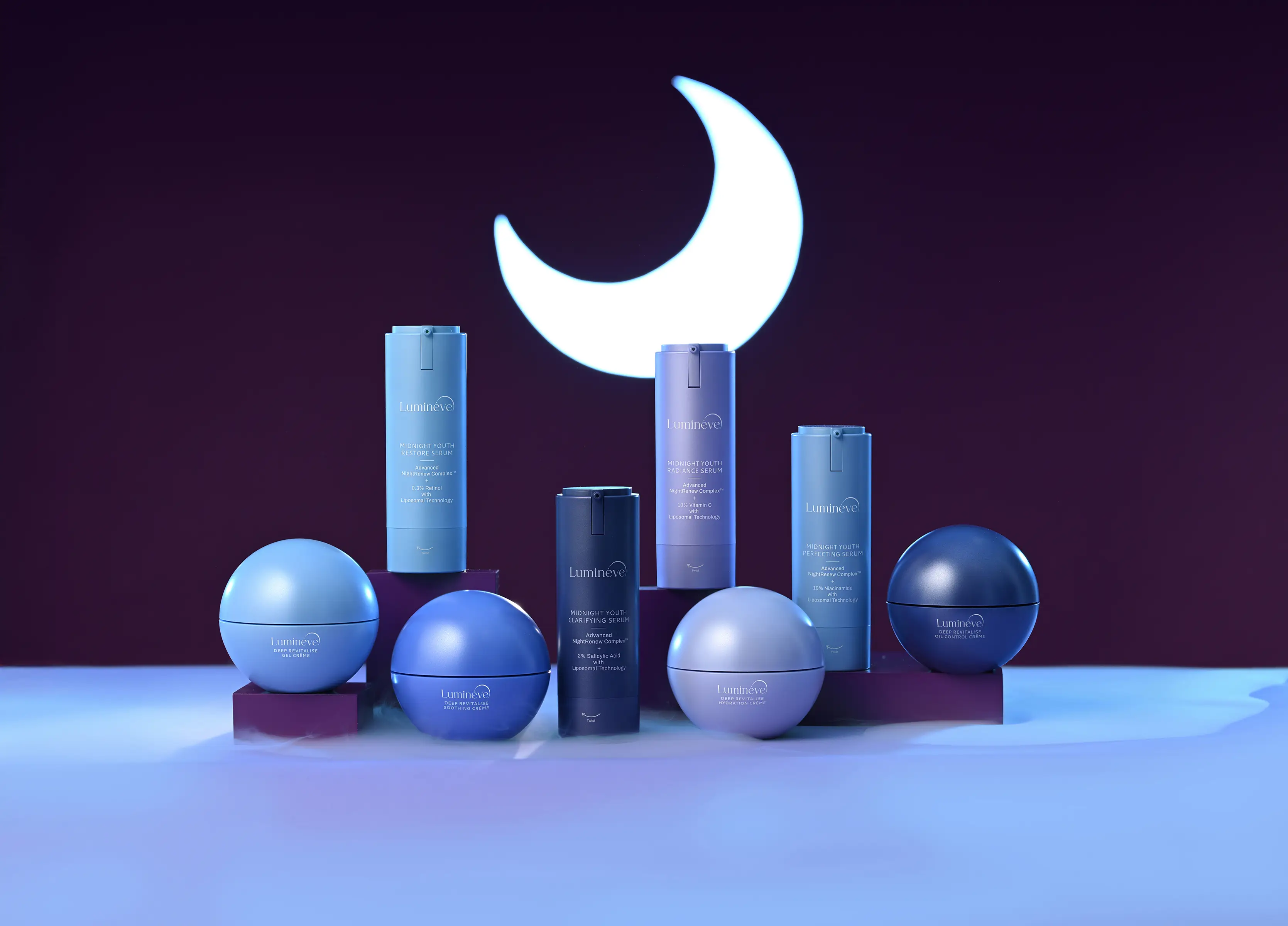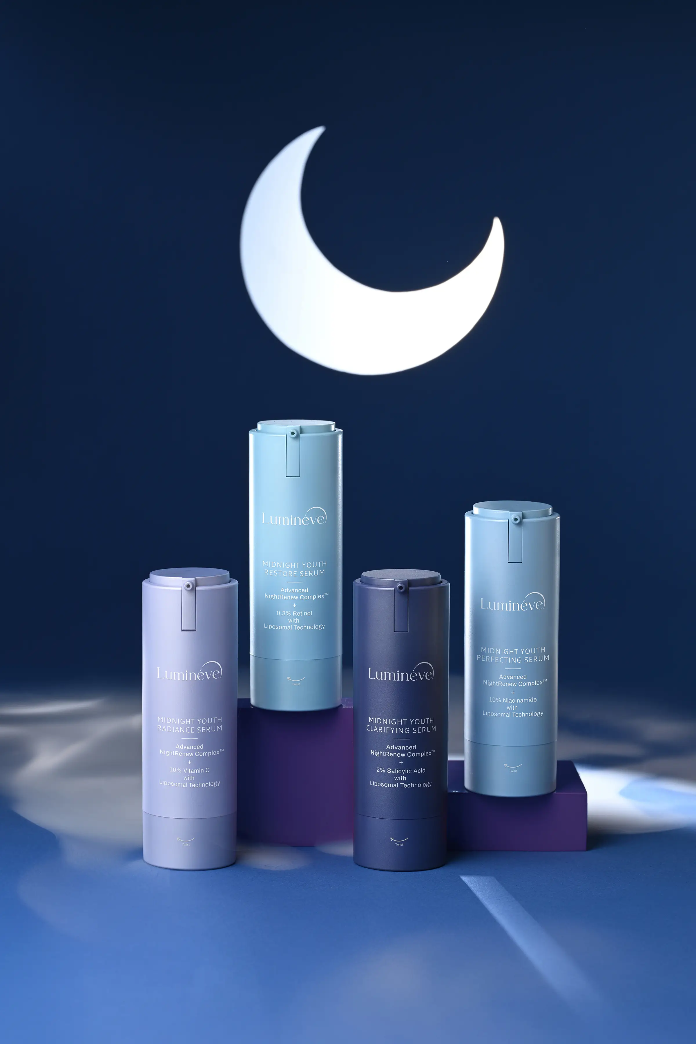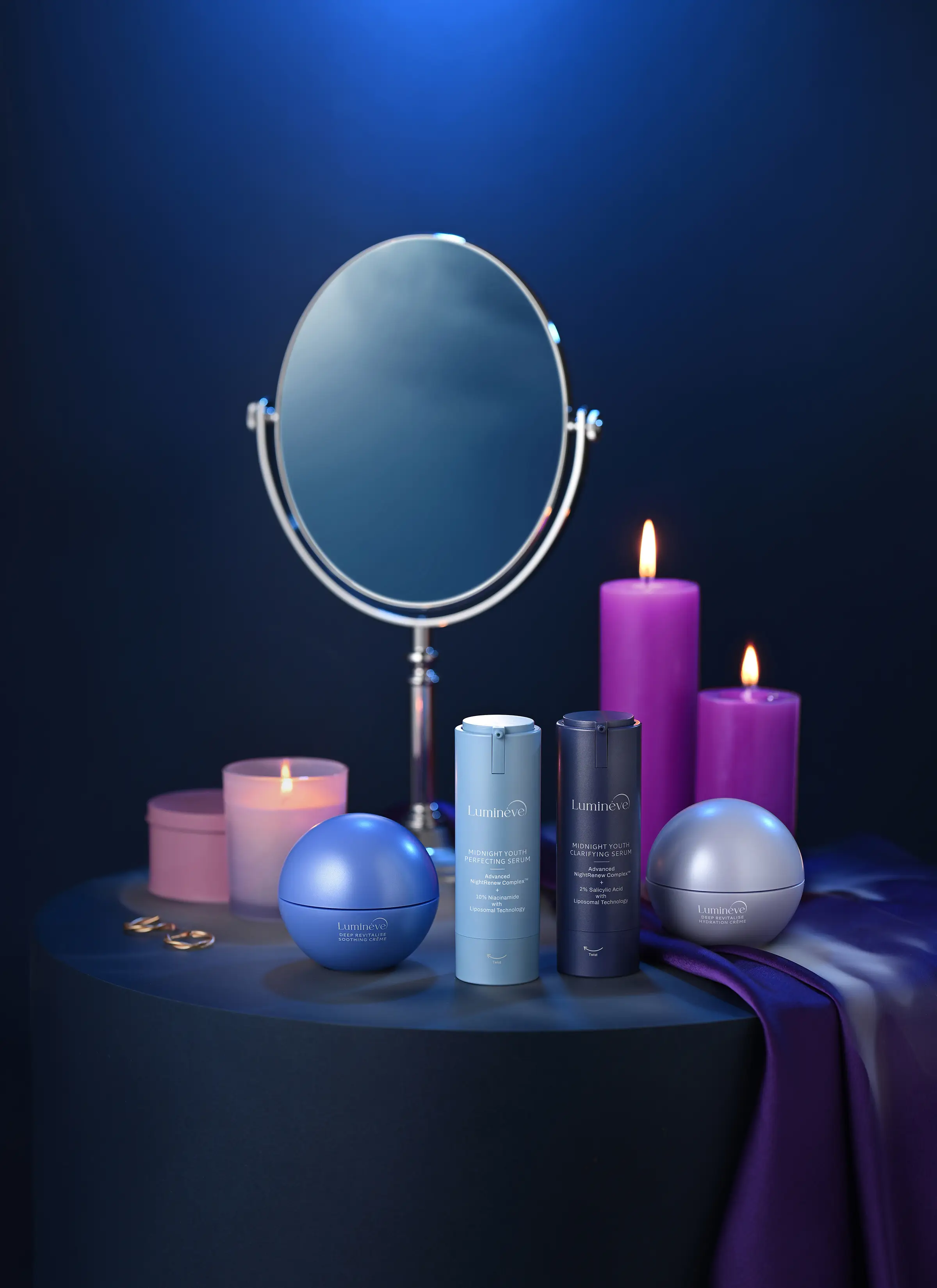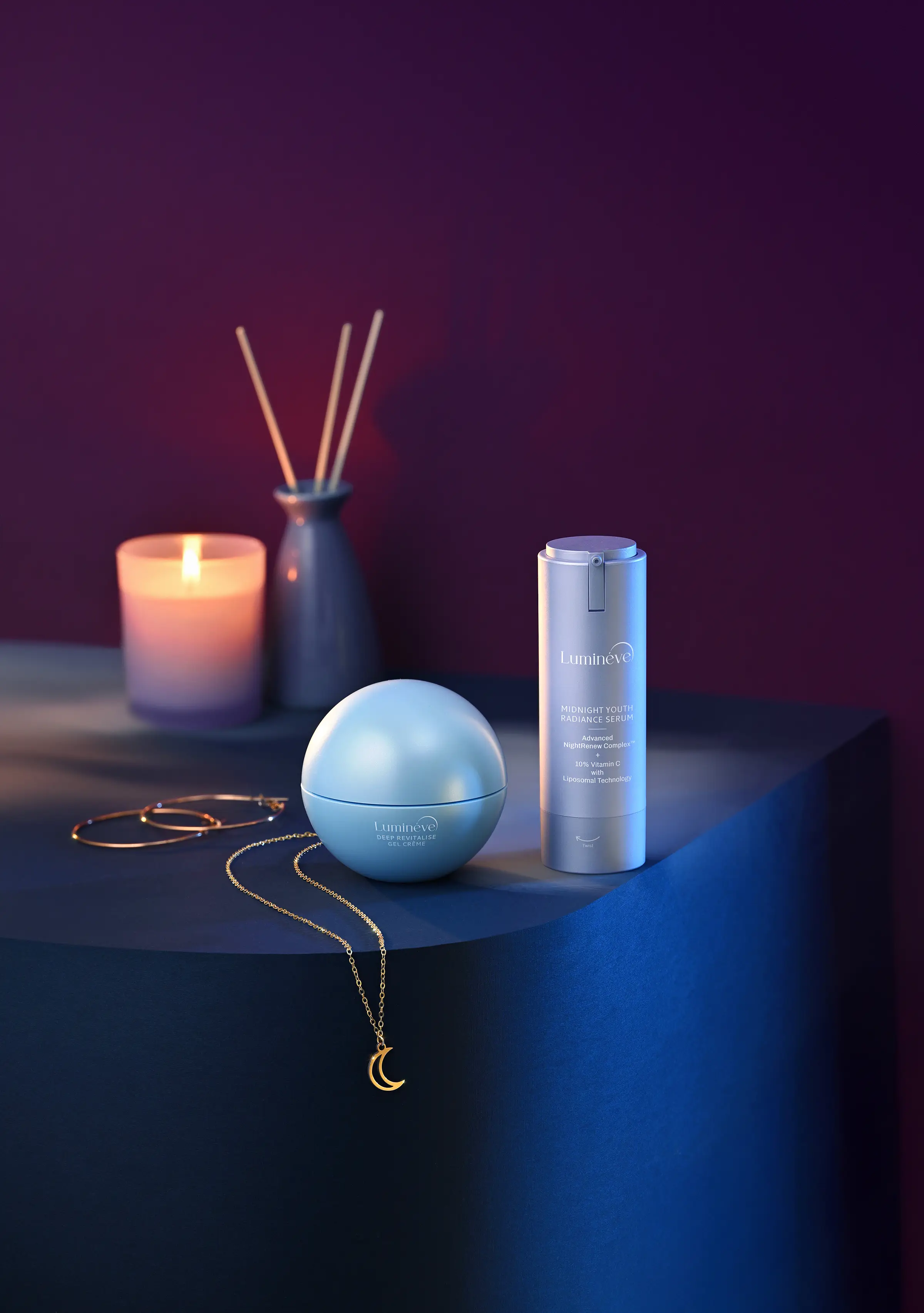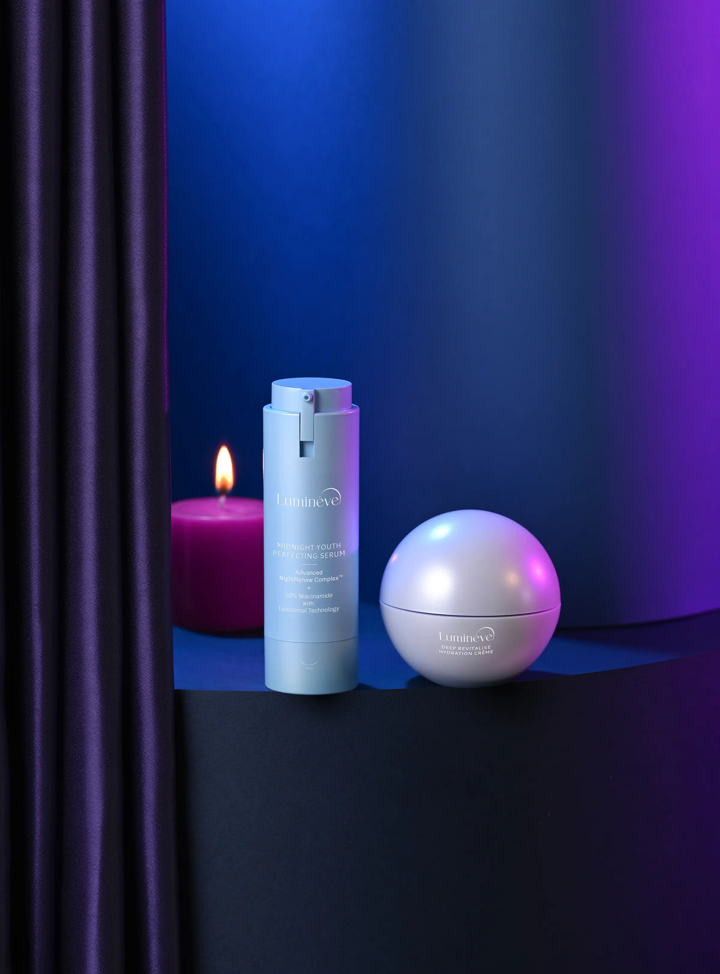 It was a deeply fulfilling experience styling and shooting this proactive project for ‘Lumineve’, an Indian premium skincare range designed for the skin’s nighttime repair and renewal. I was drawn to the idea that true restoration does not happen under bright lights, it unfolds quietly in a still, silent night and that philosophy guided the mood, lighting, and visual language of the entire series.