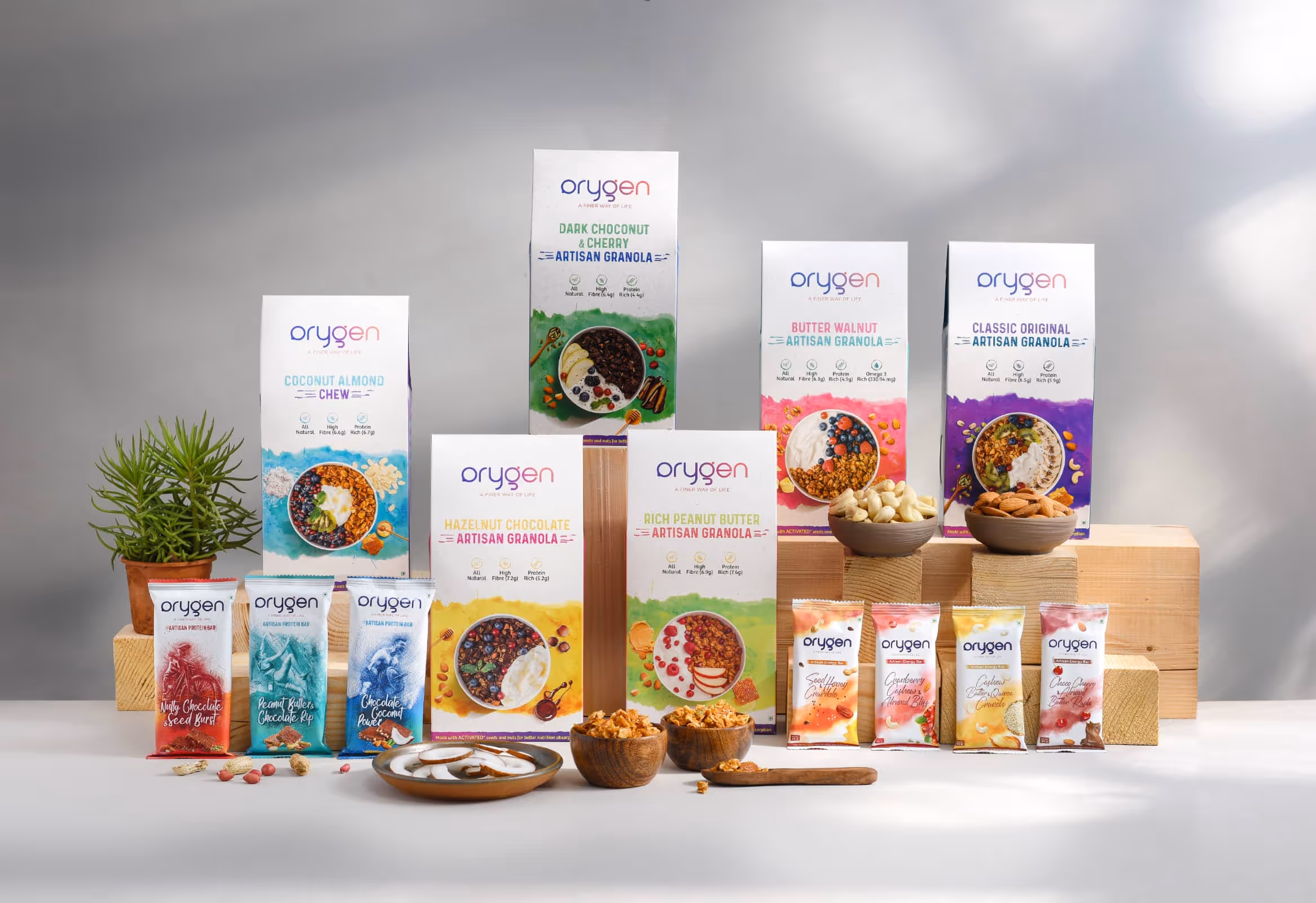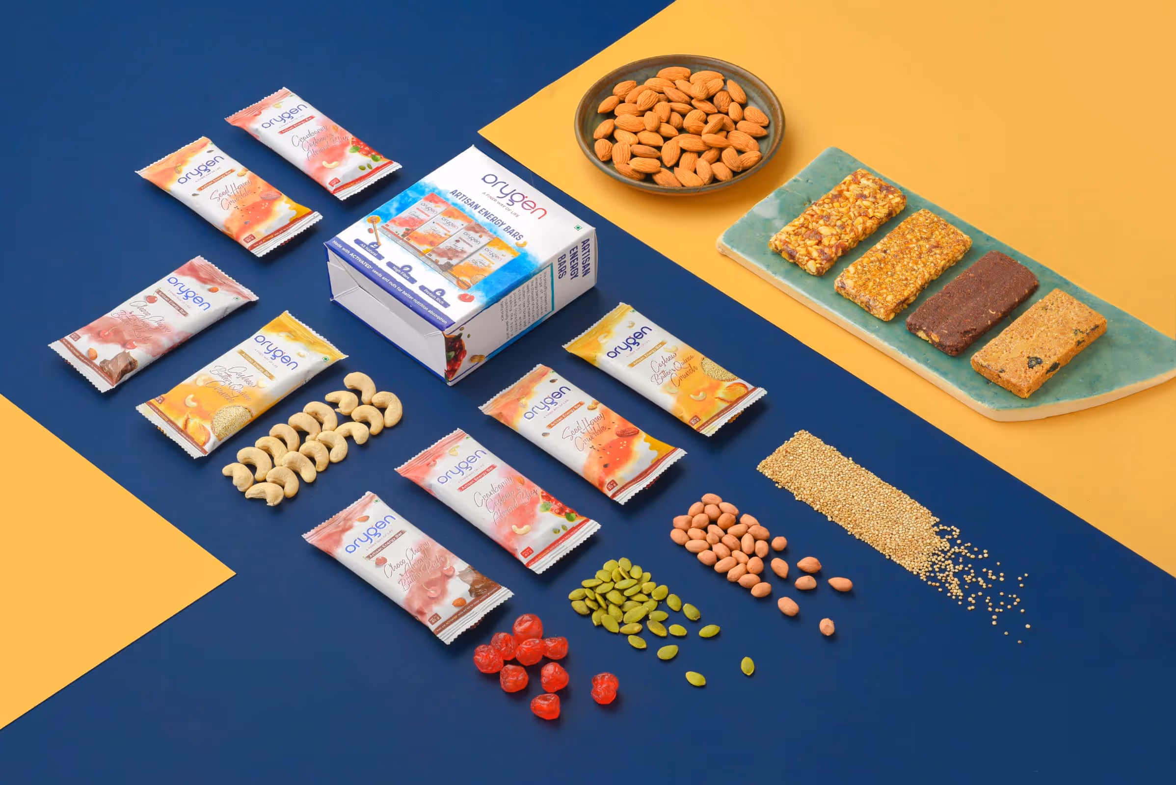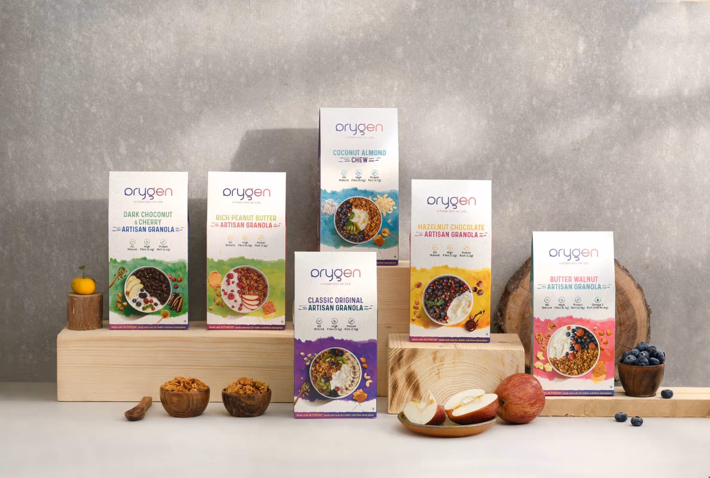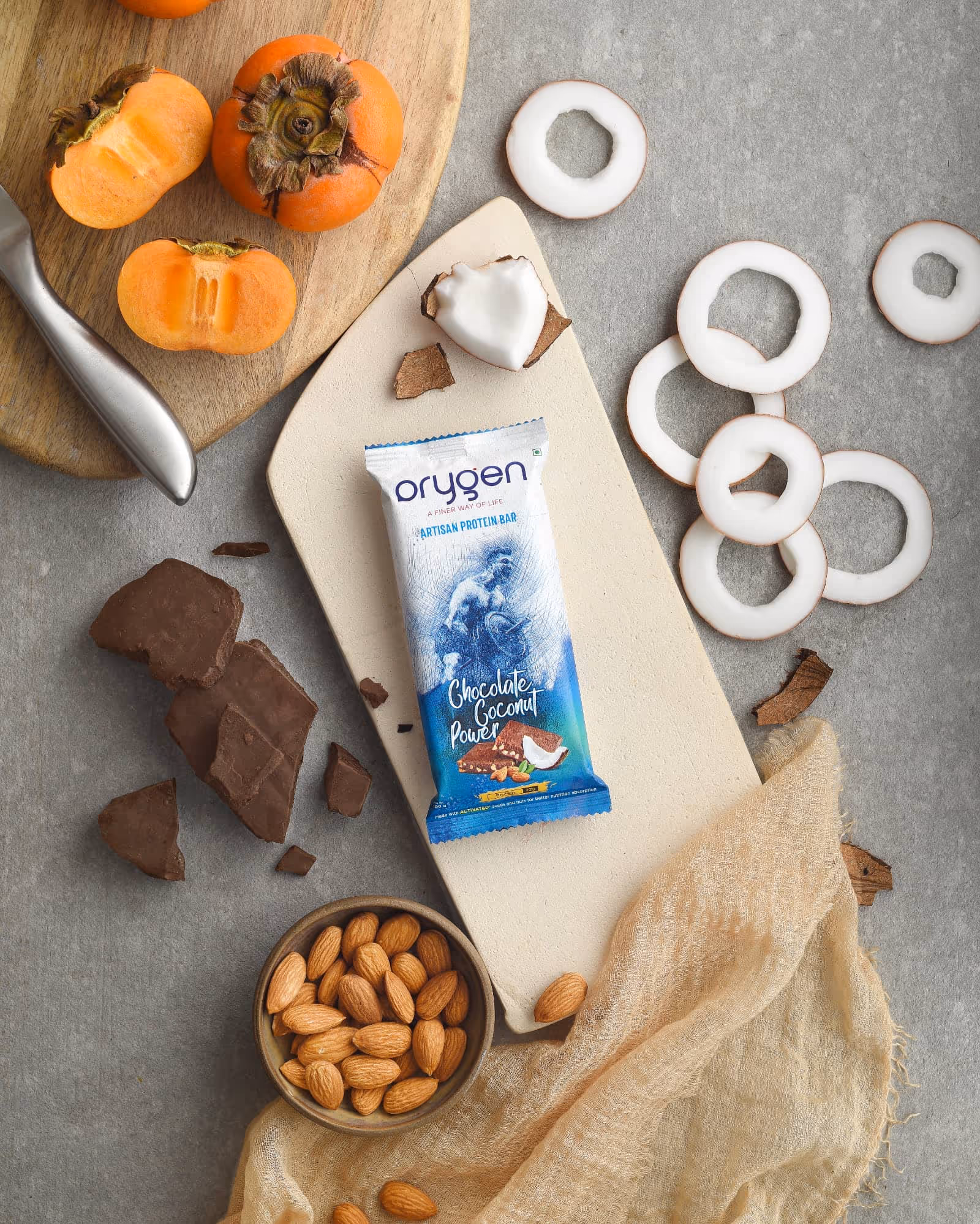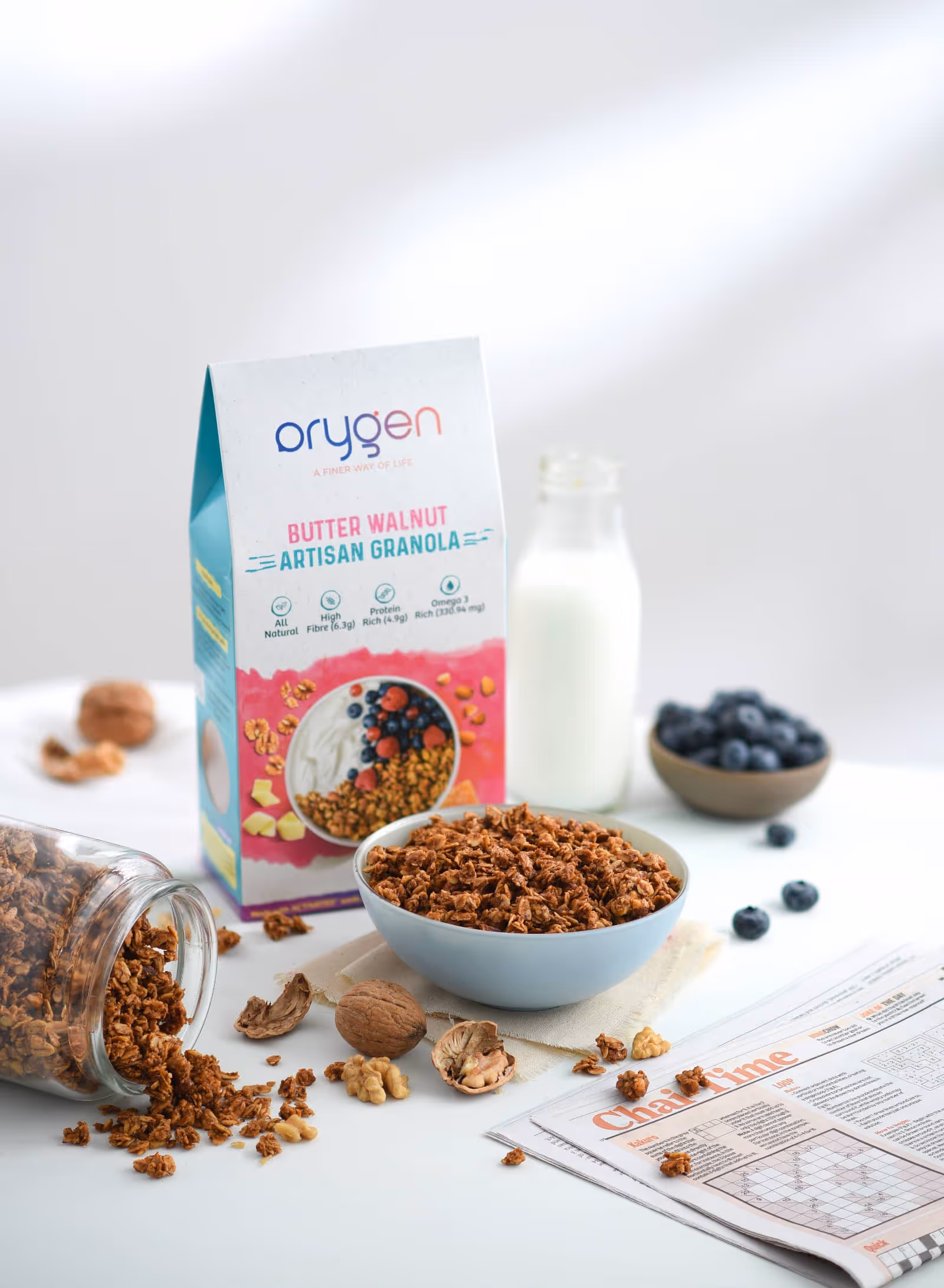 This series of images was shot for 'Orygen' brand dedicated to offering a finer approach to life and fitness. Their product range includes energy and protein bars, along with a variety of granolas, all made from all-natural ingredients and crafted to suit everyone. With fresh, vibrant ingredients set against colorful backdrops, styling and setting up each shot was an absolute delight!