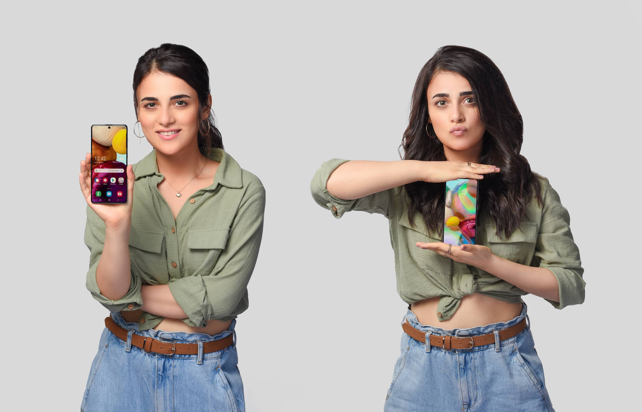 A few stills of Radhika Madan and Gajraj Rao shot for Samsung India, featuring the 'Switch Mode' in the new Samsung A71 and Samsung A51 mobile phone.