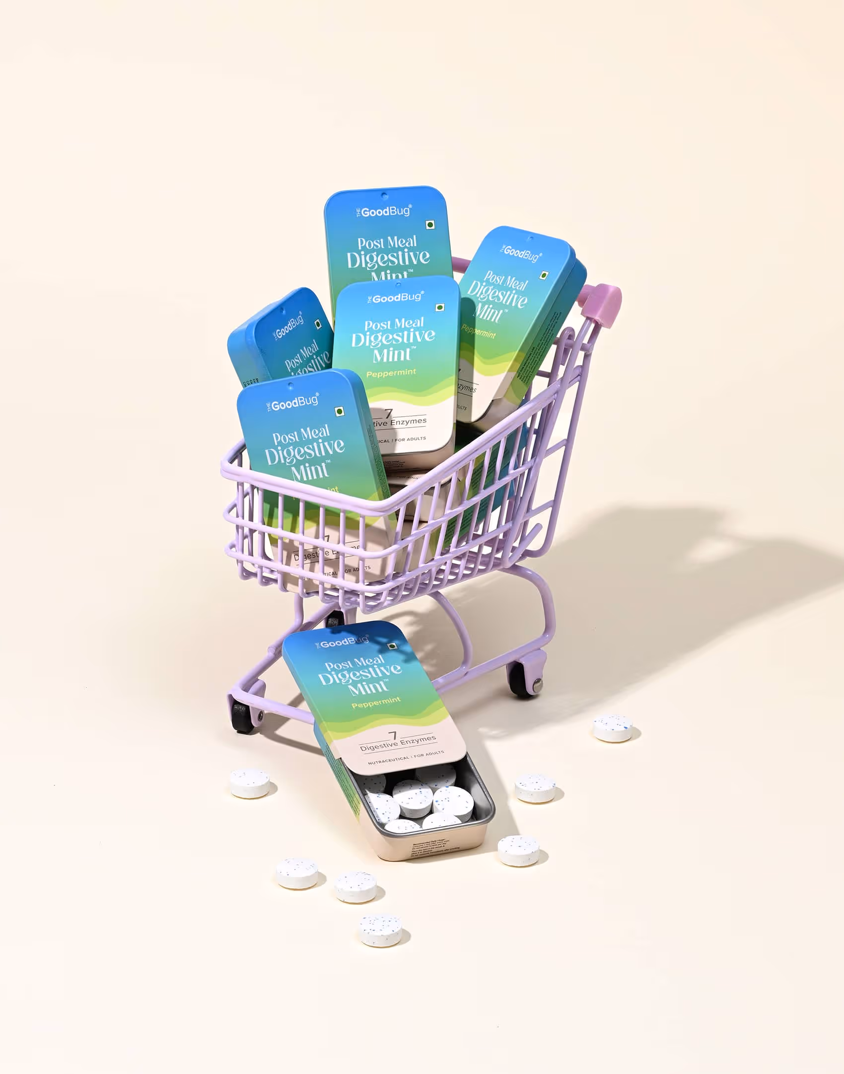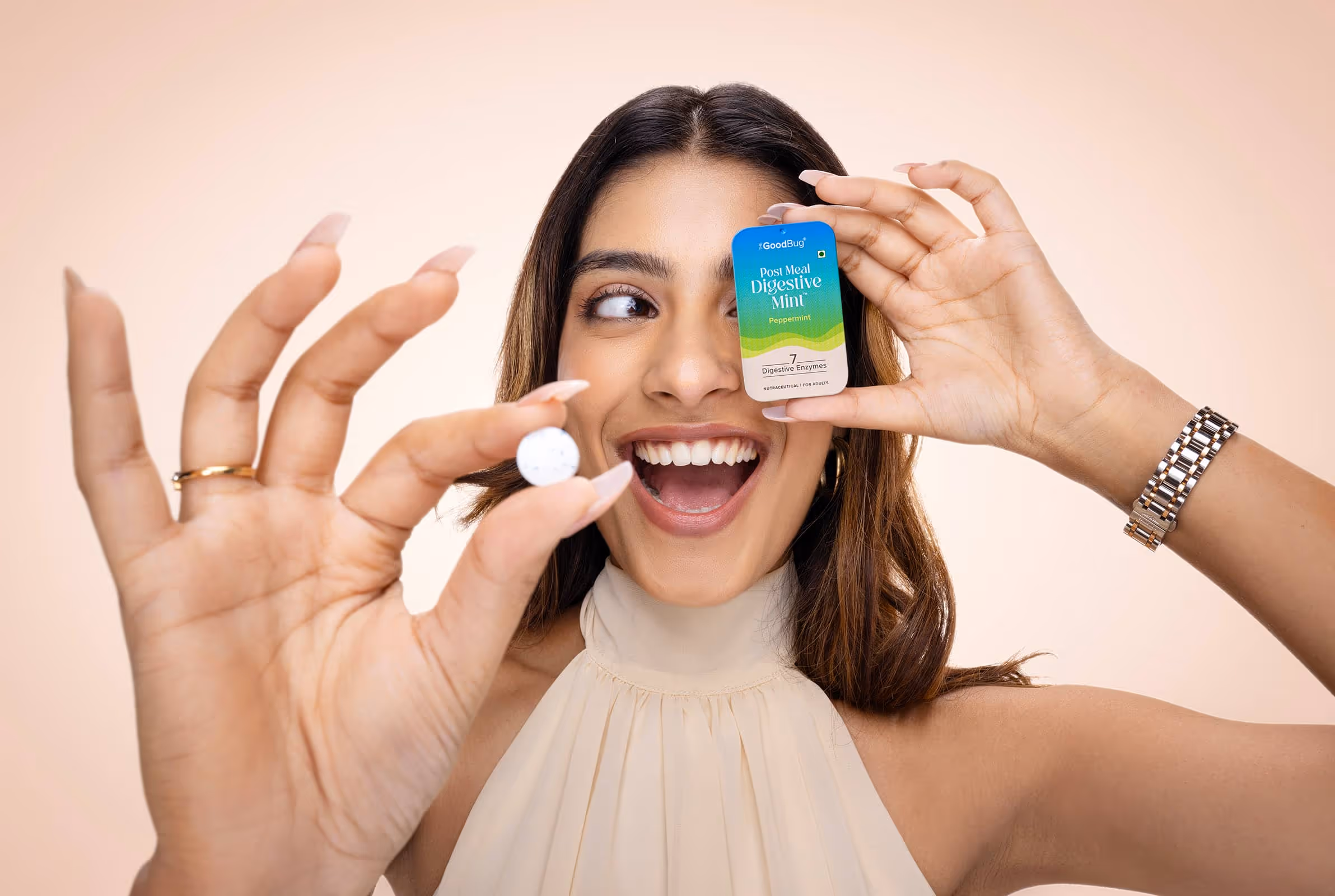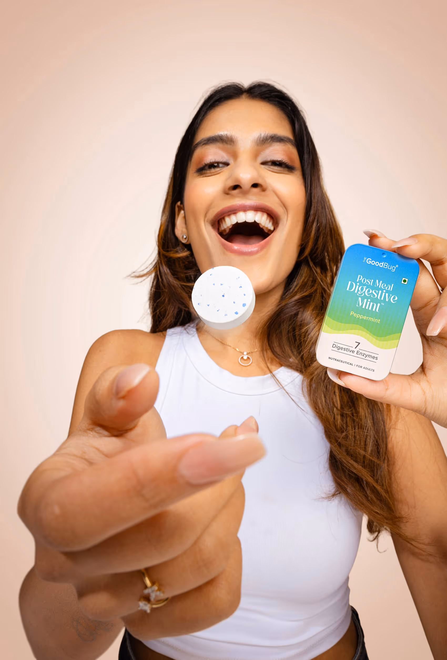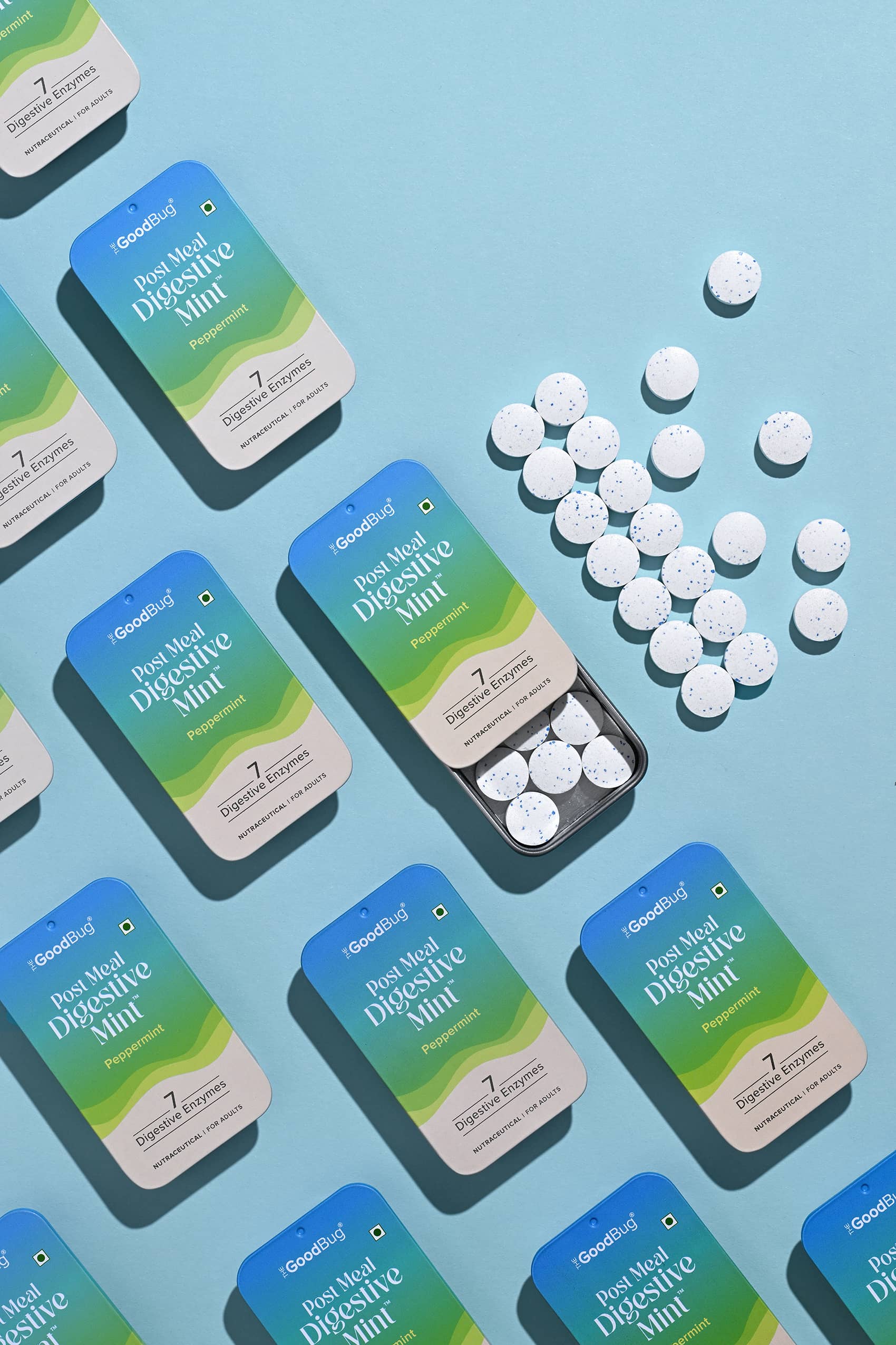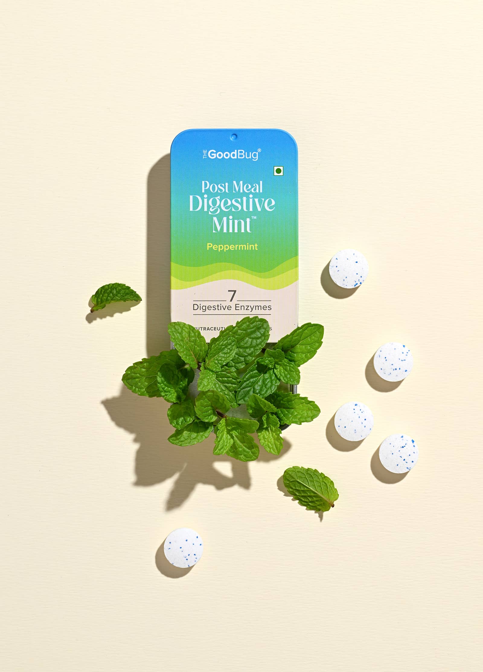 A super fun shoot for The Good Bug, an Indian health & wellness brand is all about happy guts. This series was styled and shot for their latest launch- 'Post-Meal Digestive Mints'. Beyond our classic product–ingredient frames, experimenting with quirky talent portraits and food pairings was hands down our favourite part!